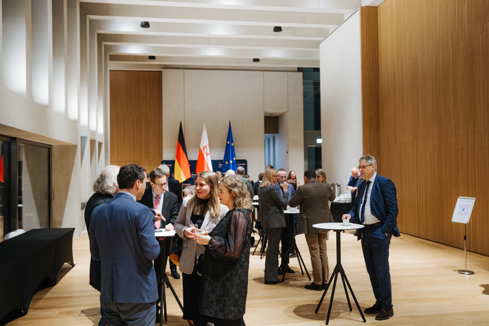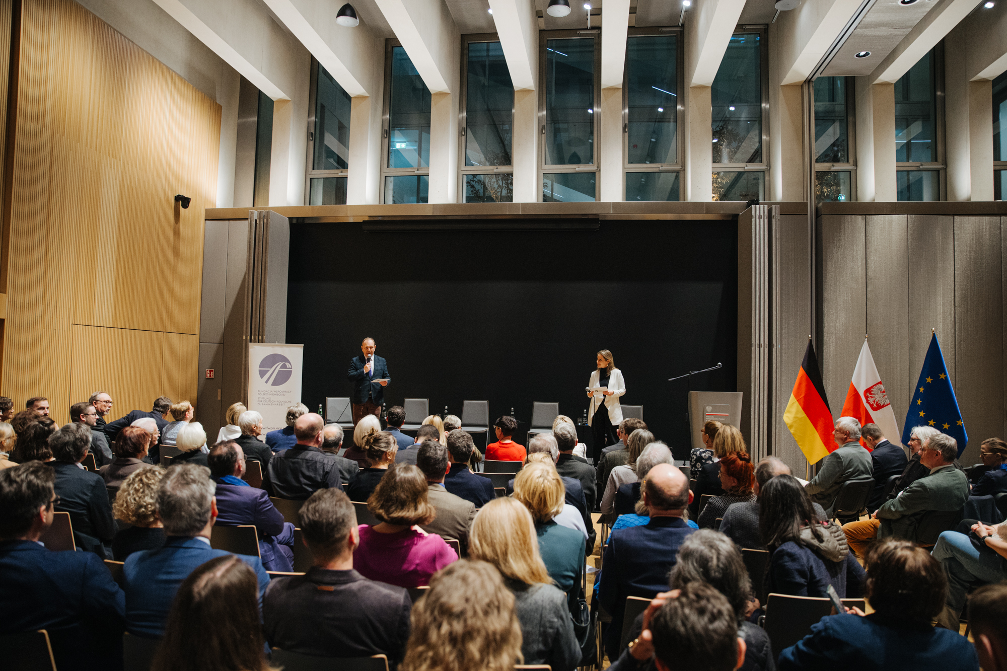 Über 180 Vertreterinnen und Vertreter der Zivilgesellschaft folgten der Einladung und nutzten die Gelegenheit, sich über geplante Vorhaben und Synergien im Jubiläumsjahr auszutauschen. Die Botschaft der Republik Polen in Berlin stellte für diesen besonderen Abend ihre Räumlichkeiten zur Verfügung und schuf damit den Rahmen für einen intensiven Dialog.