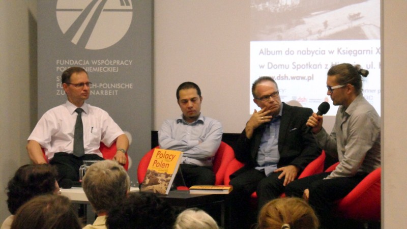 Während der anschließenden Podiumsdiskussion betonten die Autoren Tomasz Markiewicz (SdpZ), Tadeusz W. Świątek und Krzysztof Wittels, dass Spuren der deutschstämmigen Warschauer bis heute in der polnischen Hauptstadt zu finden seien, so in z.B. in der Architektur wie es die Gebäude der Polytechnischen Hochschule, der Alten Universitätsbibliothek oder der Nationalgalerie Zachęta veranschaulichen, dem Industriesektor (u.a. Wedel) oder den Ortsbezeichnungen Ulrychów und Boernerowo. Die Autoren berichteten auch über die anfänglichen Vorbehalte gegenüber diesem Projekt. Es zeigte sich nämlich, dass ein großer Teil der Nachfahren auch gut 70 Jahre nach dem Zweiten Weltkrieg nicht gern an seine deutschen Wurzeln erinnert werden wollte, auch wenn sich diese Familien eher positiv in die Annalen Polens eingegangen sind. Das zeige wie sehr diese Publikation nötig gewesen sei, Markiewicz, Świątek, Wittels.