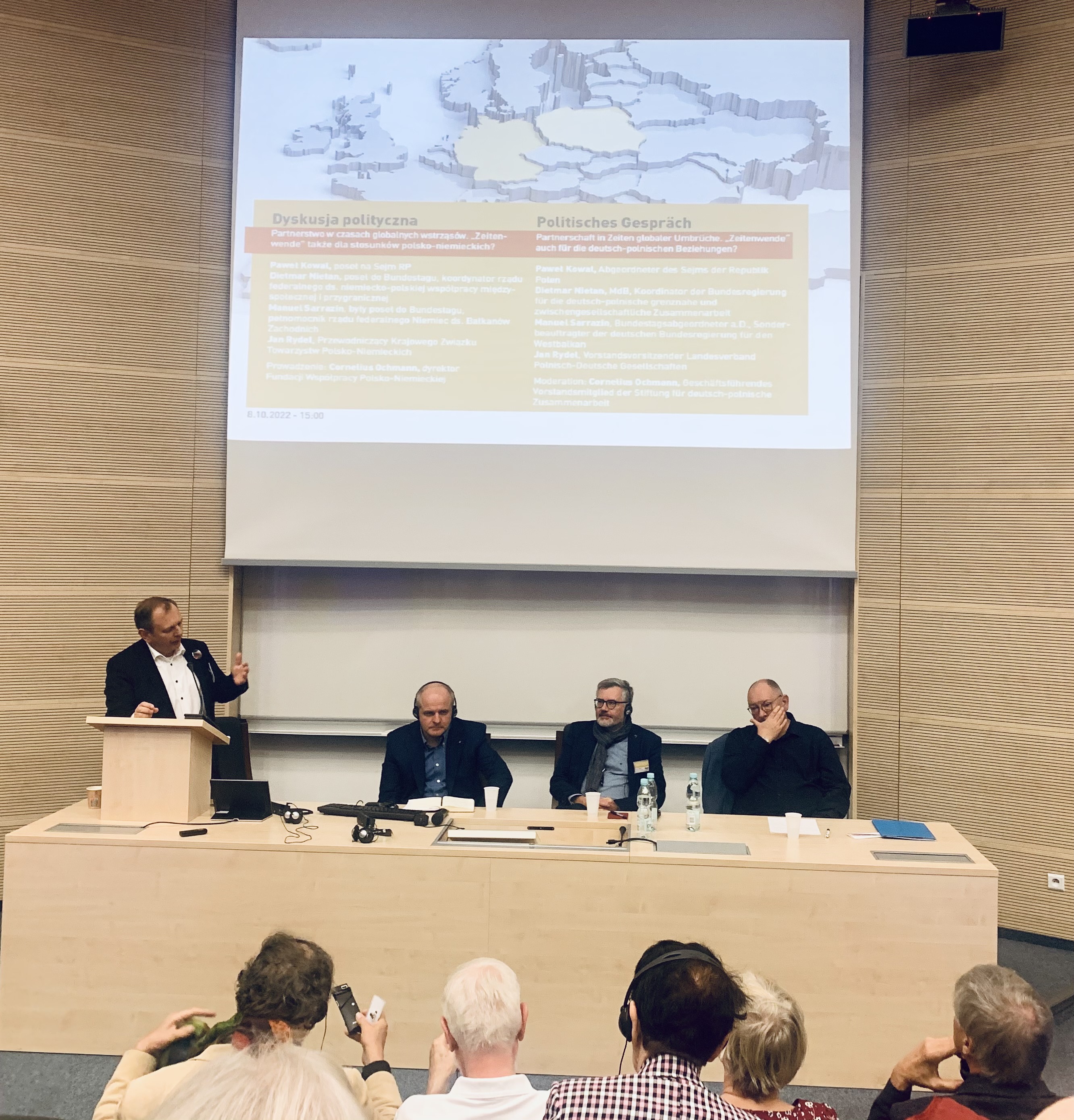 Am Samstag wurde in der Aula der Universität Rzeszów intensiv diskutiert - über die Zukunft der Ukraine, die geleistete und weiterhin gebrauchte humanitäre Hilfe für die Ukraine sowie über die aktuellen Herausforderungen für die deutsch-polnische Nachbarschaft in der Mitte Europas, darunter auch die Notwendigkeit, engagierten Nachwuchs für die Arbeit an der Basis, in den Deutsch-Polnischen bzw. Polnisch-Deutschen Gesellschaften zu rekrutieren.
