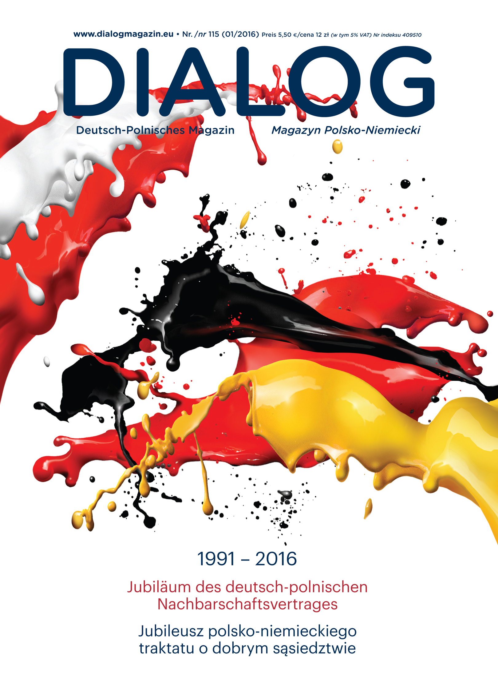 Die neueste Ausgabe des DIALOGS ist dem 25. Jahrestag des deutsch-polnischen Vertrags über gute Nachbarschaft und freundschaftliche Zusammenarbeit gewidmet. In Interviews loben die beiden Außenminister Witold Waszczykowski und Frank-Walter Steinmeier die Beziehungen zwischen den beiden Ländern, üben aber auch Kritik. Des Weiteren enthält die Ausgabe Beiträge von Cornelia Pieper, Gerhard Gnauck und Anna Wolff-Powęska.