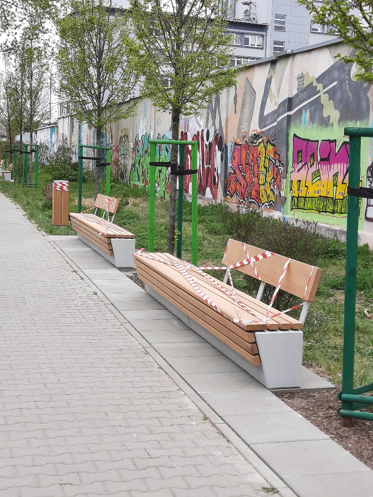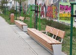 Ende April konnten in der Al. Wedla im Abschnitt zwischen der Al. Zieleniecka bis zur ul. Lubelska, sechs neue Parkbänke und ein Sitzplatz installiert werden. Das Gebiet wurde auch mit kleinen einheitlichen architektonischen Elementen ausgestattet. Die Bänke befinden sich in zwei Nischen, jeweils drei nebeneinander. Sie sind 4 Meter lang und verfügen über eine Rückenlehne von 2 Metern. Auf Armlehnen wurde verzichtet, um den Kommunikationsfluss und das moderne Design nicht zu beeinträchtigen. Zwischen den Bänken kann ein Kinderwagen, ein Rollstuhl, ein Fahrrad oder ein Roller platziert werden. Dort befindet sich ferner eine kurze, 1,2 Meter breite Bank mit Rückenlehne. Sie steht im Schatten auf der Höhe des Freilufttheaters auf der zweiten Asphaltfläche zwischen der Al. Wedla und der Seepromenade am Kamionkowski-See. „Das Holz stammt aus zertifizierten Plantagen und bleibt in seiner natürlichen Form ohne Lackierung, nur geölt. Daher werden die Bänke mit der Zeit eine graue Patina annehmen, die einen ruhigen Hintergrund für die grüne Farbe des jeweiligen Gartens bietet und das Auge nicht mit grellem Farbton irritiert“ – aus dem Newsletter von Izabela Małachowska-Coquis (Büro Coqui Malachowska Coqui Städtebau Landschaftsarchitektur), der für die Deutsch-Polnischen Gärten erstellt wurde. Unsere Einrichtungsgegenstände sind auch auf der Homepage des Herstellers Puczyński illustriert: https://www.puczynski.pl/pce/911/aleja-wedla-etap-ii.