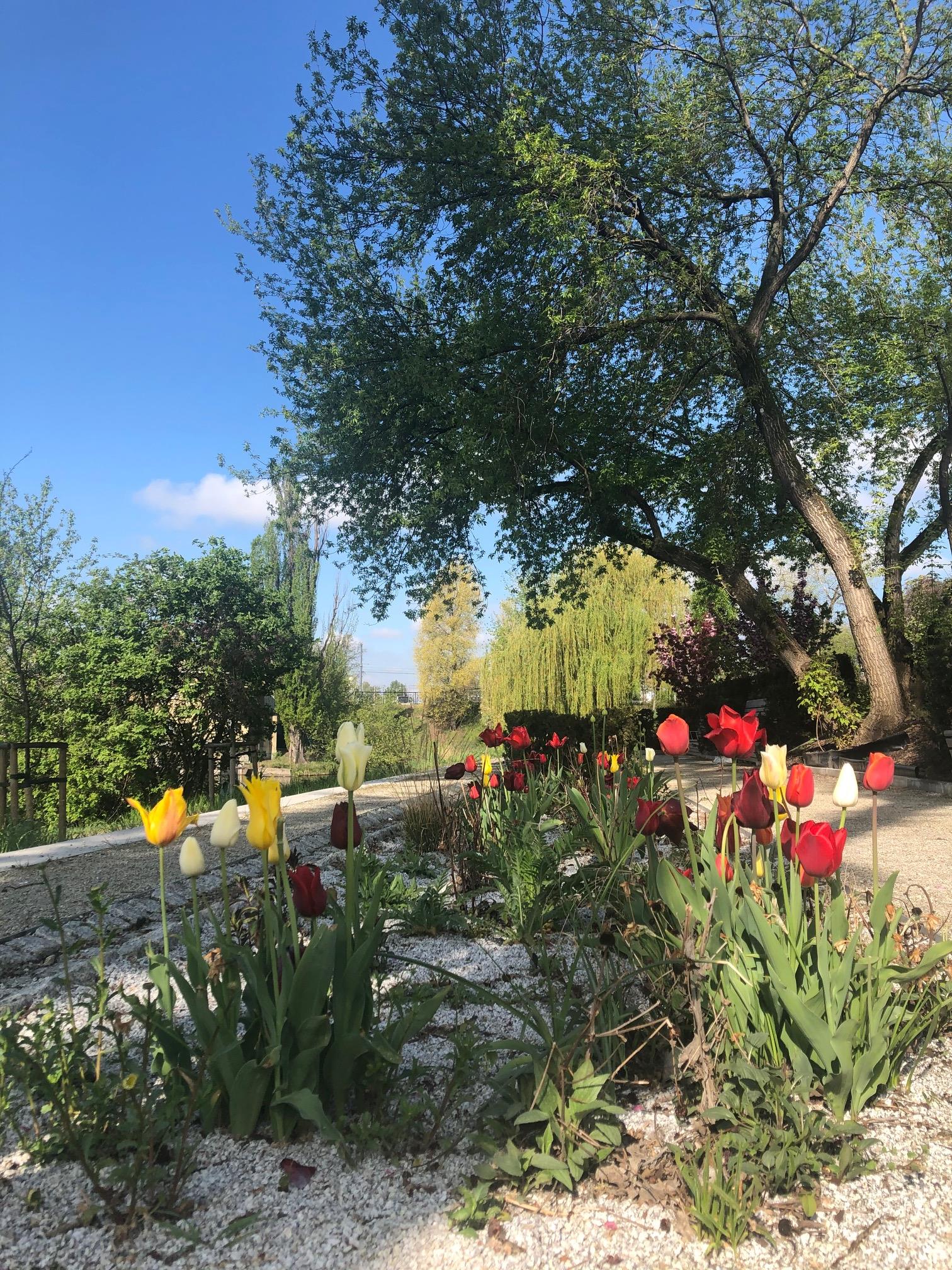 Derzeit blühen die Deutsch-Polnischen Gärten in allen Farben. Sie können beispielsweise bewundern, wie an der Mauer zum Fabrikgebäude der Firma LOTTE Wedel Fliederbäume gepflanzt werden, oder die in Nationalfarben blühenden Tulpen im Garten der Farben.