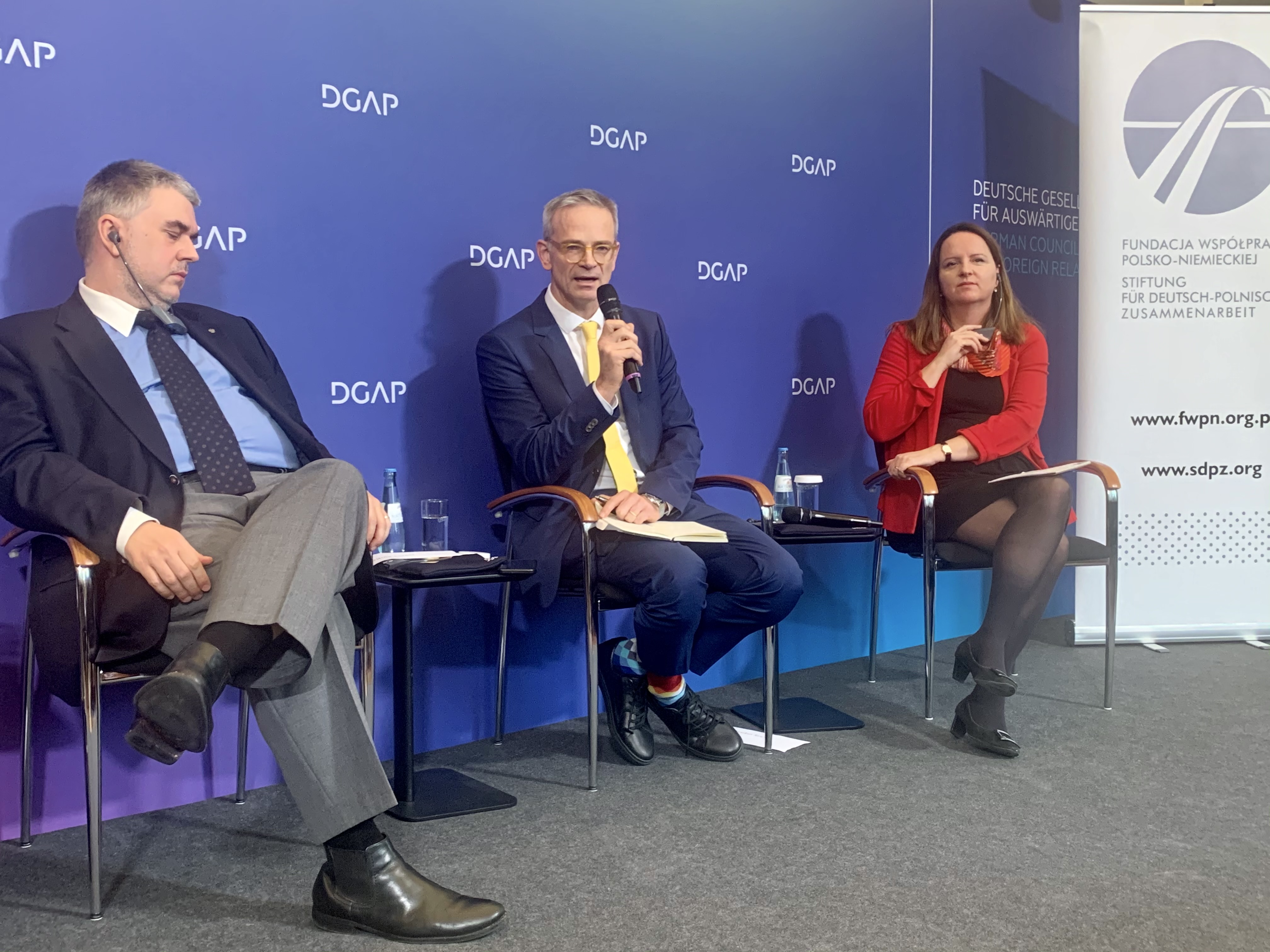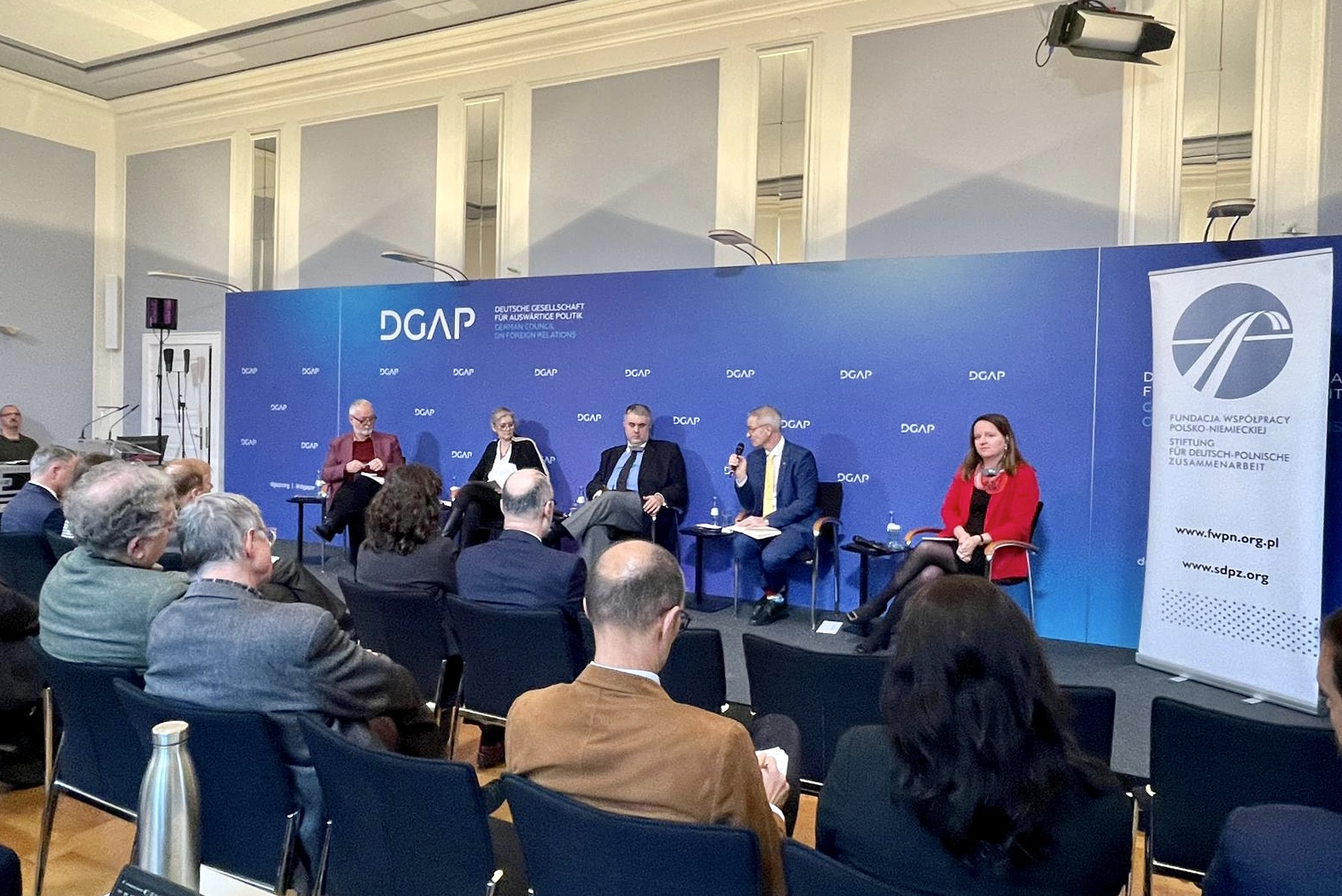 Die Stiftung für deutsch-polnische Zusammenarbeit (SdpZ) und die Deutsche Gesellschaft für Auswärtige Politik e.V. (DGAP) freuen sich, dieses Dialogformat mit langer Tradition gemeinsam fortsetzen zu können. Die Gesprächsreihe wendet sich insbesondere an Entscheidungsträger:innen aus Politik, Gesellschaft und Wirtschaft, die mit hochkarätigen Expert:innen aus Deutschland und Polen aktuelle und zukunftsrelevante Themen diskutieren. Als Gäste konnten wir 2023 u.a. den polnischen Botschafter in Deutschland Dariusz Pawłoś, Staatssekretär Arkadiusz Mularczyk, die Russlandexpertin Frau Prof. Agnieszka Legucka und den Polenbeauftragten der Bundesregierung Dietmar Nietan begrüßen.