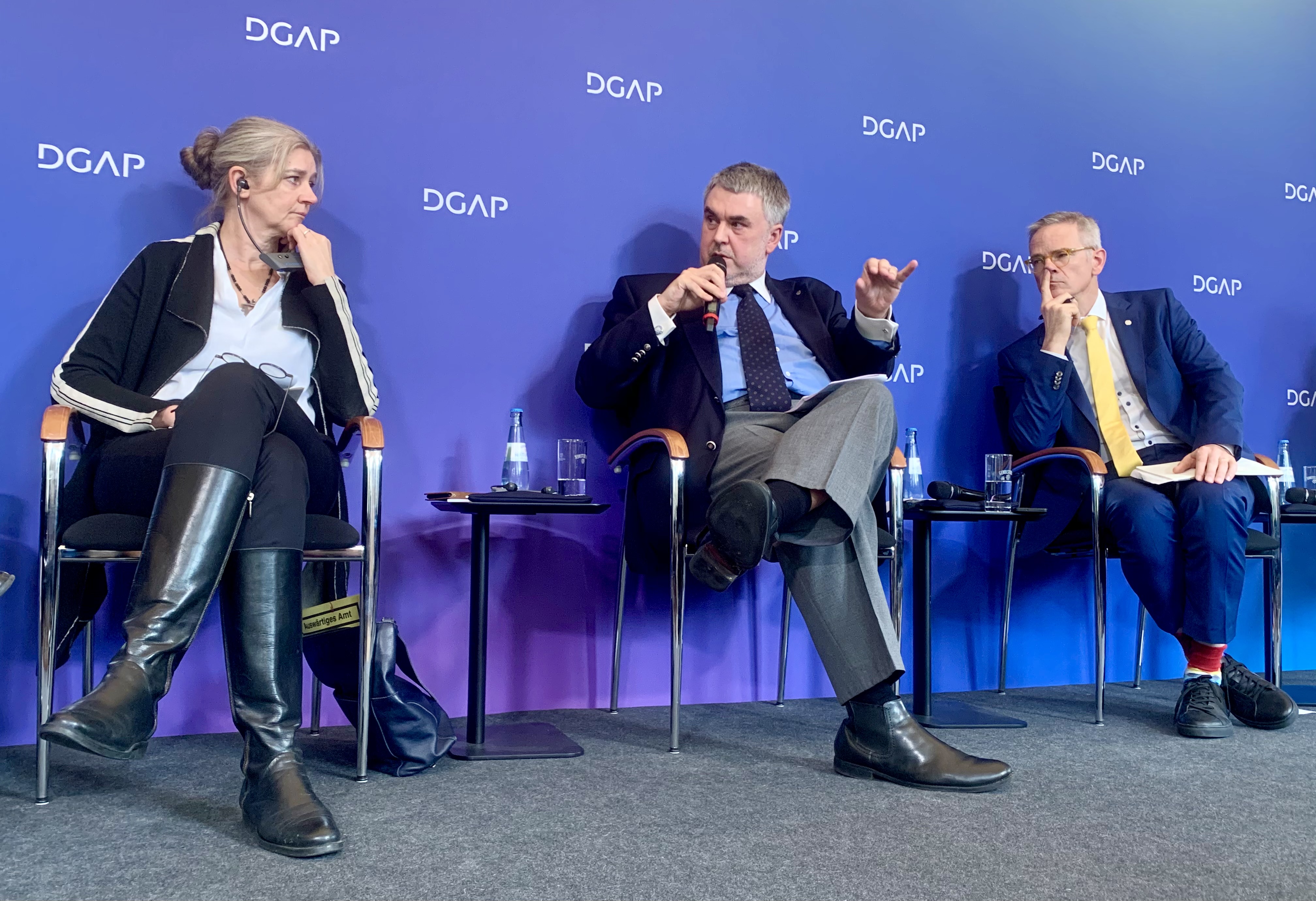 Für den vertraulichen Austausch konnten wir aus Polen Anna Radwan-Röhrenschef, Präsidentin des In.Europa-Instituts und Leiterin des Warschauer Ortsverbands der Partei Polska 2050 sowie Witold Jurasz, den Diplomatischen Korrespondenten von Onet.pl, gewinnen. Die deutsche politische Position erläuterten unseren Gästen Botschafterin Catalina Cullas, Beauftragte im Auswärtigen Amt für die Beziehungen zu den Mitgliedstaaten der EU und für die grenzüberschreitende und regionale Zusammenarbeit, sowie der Bundestagsabgeordnete Markus Reichel.