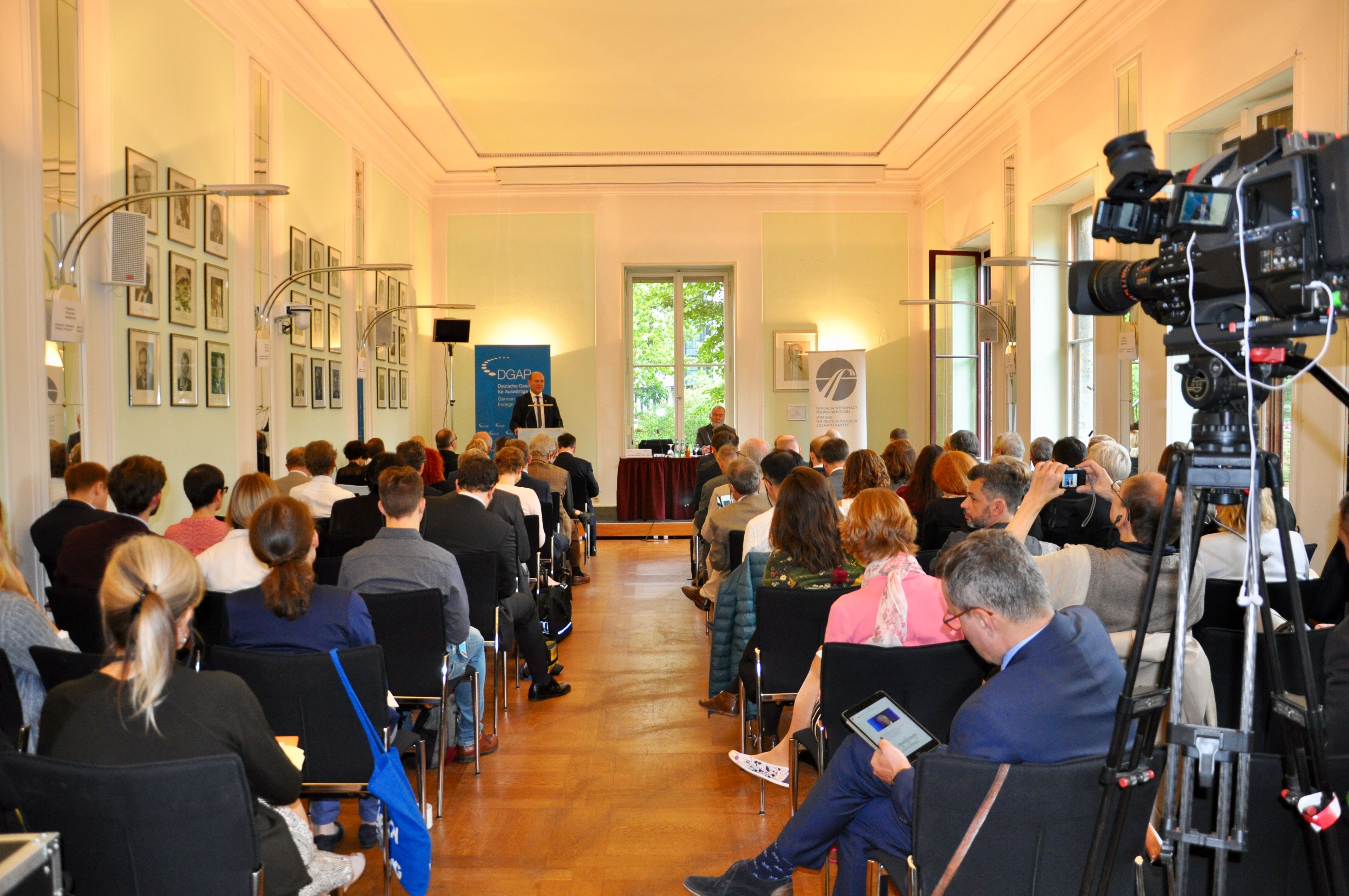 Am Freitag, den 7. September 2018, war der polnische Vize-Außenminister Szymon Szynkowski vel Sęk zu Gast beim Gesprächskreis Polen, der sich traditionell in den Räumlichkeiten der Deutschen Gesellschaft für Auswärtige Politik traf. In seinem Impulsreferat zum Thema „Polen und Deutschland in der EU: Gemeinsame und unterschiedliche Interessen“ präsentierte der stellvertretende Außenminister den polnischen Standpunkt zu vielen europapolitischen Fragen in den bilateralen Beziehungen und appellierte an die Notwendigkeit des Dialoges – auch und vor allem dort, wo man unterschiedlicher Ansicht sei. In der anschließenden Diskussion unter der Moderation von Markus Meckel, dem Vorsitzenden des Gesprächskreises, konnten weitere Themenbereiche angerissen werden, die die ca. 70 versammelten Gäste aus Politik und Zivilgesellschaft interessierten. Bei dem Treffen war auch der SdpZ-Vorstand zahlreich vertreten