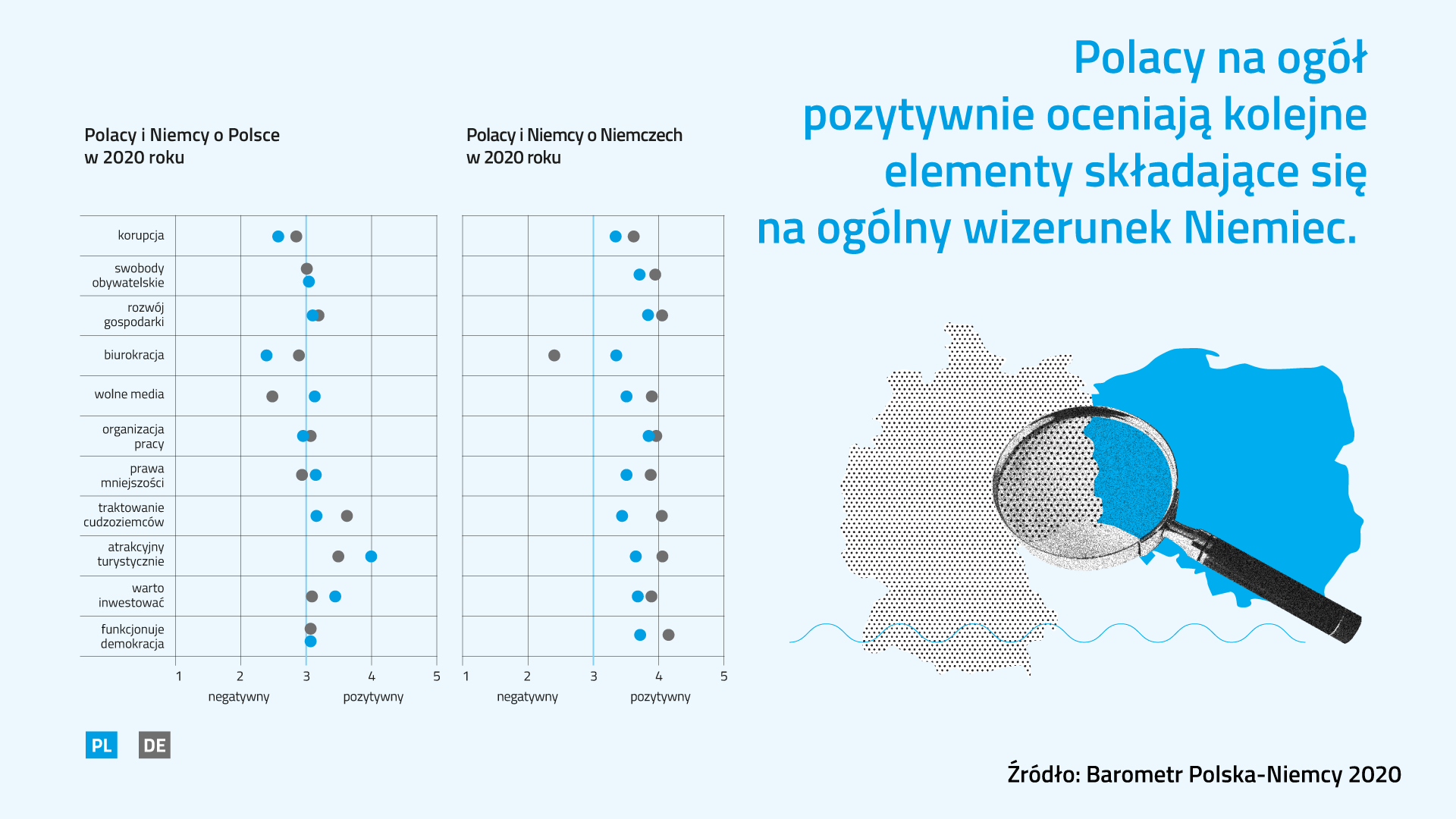 Die Geschichte spielt in den deutsch-polnischen Beziehungen nach wie vor eine sehr wichtige Rolle. In den polnischen Einschätzungen zu Deutschland ist die politische Polarisierung deutlich sichtbar, so das soeben veröffentlichte Deutsch-Polnische Barometer 2020.