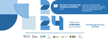 Bis zum 31. Januar können sich Medienschaffende am Wettbewerb um den Deutsch-Polnischen Tadeusz-Mazowiecki-Journalistenpreis 2024 bewerben. Die Siegerinnen und Sieger werden bei einer feierlichen Gala am 19. Juni 2024 in Greifswald prämiert. Es sind Preisgelder über insgesamt 25.000 Euro ausgelobt!