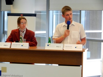 „Soll die Europäische Union auch künftig sportliche Großveranstaltungen bei Menschenrechtsverletzungen im Veranstaltungsland boykottieren?“ - zu diesem Thema lieferten sich am 1. Juni die Finalisten des Wettbewerbs Jugend debattiert international auf Deutsch eine lebhafte Debatte. Die Schüler Rafał Korzeniec und Justyna Dąbrowska konnten ihre Position am besten begründen und überzeugten die Jury mit ihrer Sachkenntnis und ihren Argumentationsfähigkeiten. Als beste junge Debattanten Polens kommen sie nun ins internationale Finale des Debattierwettbewerbs, wo sie auf die Landessieger aus Estland, Lettland, Litauen, Russland, Tschechien, der Ukraine und Ungarn treffen.