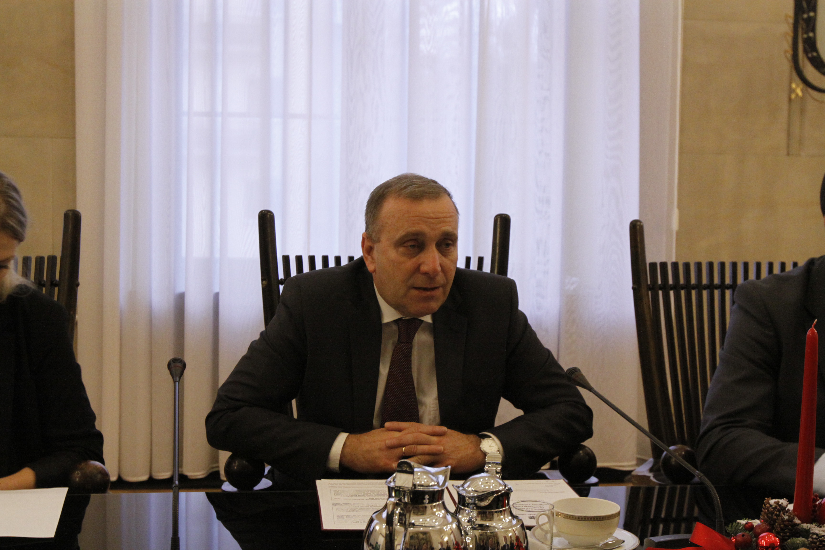 Außenminister Schetyna lobte die hohe Qualität der deutsch-polnischen Beziehungen und wies auf ihre derzeit besonders wichtige Rolle im Aufbau einer Zusammenarbeit mit der Ukraine, aber auch mit anderen Staaten der östlichen Partnerschaft hin. Er erläuterte ebenso die Notwendigkeit, eine Zivilgesellschaft in der Ukraine zu errichten.