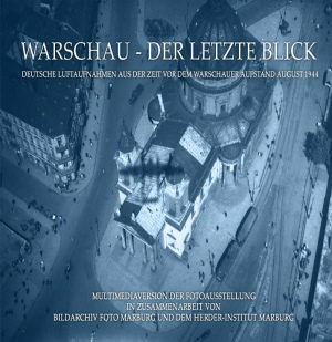 Die Luftaufnahmen stammen aus dem Bildarchiv Foto Marburg, dem die Serie von 110 Fotos 1983 aus einem privaten Nachlass übergeben worden war. Dort "wiederentdeckt" wurde dieser kleine Bestand an wertvollen und in der Forschung bislang unbekannten Bildquellen anlässlich eines Studienaufenthalts von Dr. Marek Barański im Herder-Institut Marburg im Jahr 2003. Aus seine Initiative hin und von ihm konzipiert wurde eine Präsentation zunächst für das polnische Publikum im Herbst 2004. Die deutschsprachige Version der Ausstellung und die Multimediaversion wurden realisiert in Kooperation von Dr. Barański, dem Historischen Museum der Stadt Warschau, dem Bildarchiv Foto Marburg und dem Herder-Institut. Sie sind ergänzt durch Erläuterungen zu den elf in den Luftbildern porträtierten Stadtteilen und Ensembles sowie durch historische und jüngere Einzelaufnahmen aus den beteiligten Bildarchiven sowie aus dem Bildarchiv des Kunstinstituts der Polnischen Akademie der Wissenschaften (IS PAN) in Warschau. Die technische Umsetzung besorgte das Bildarchiv Foto Marburg.