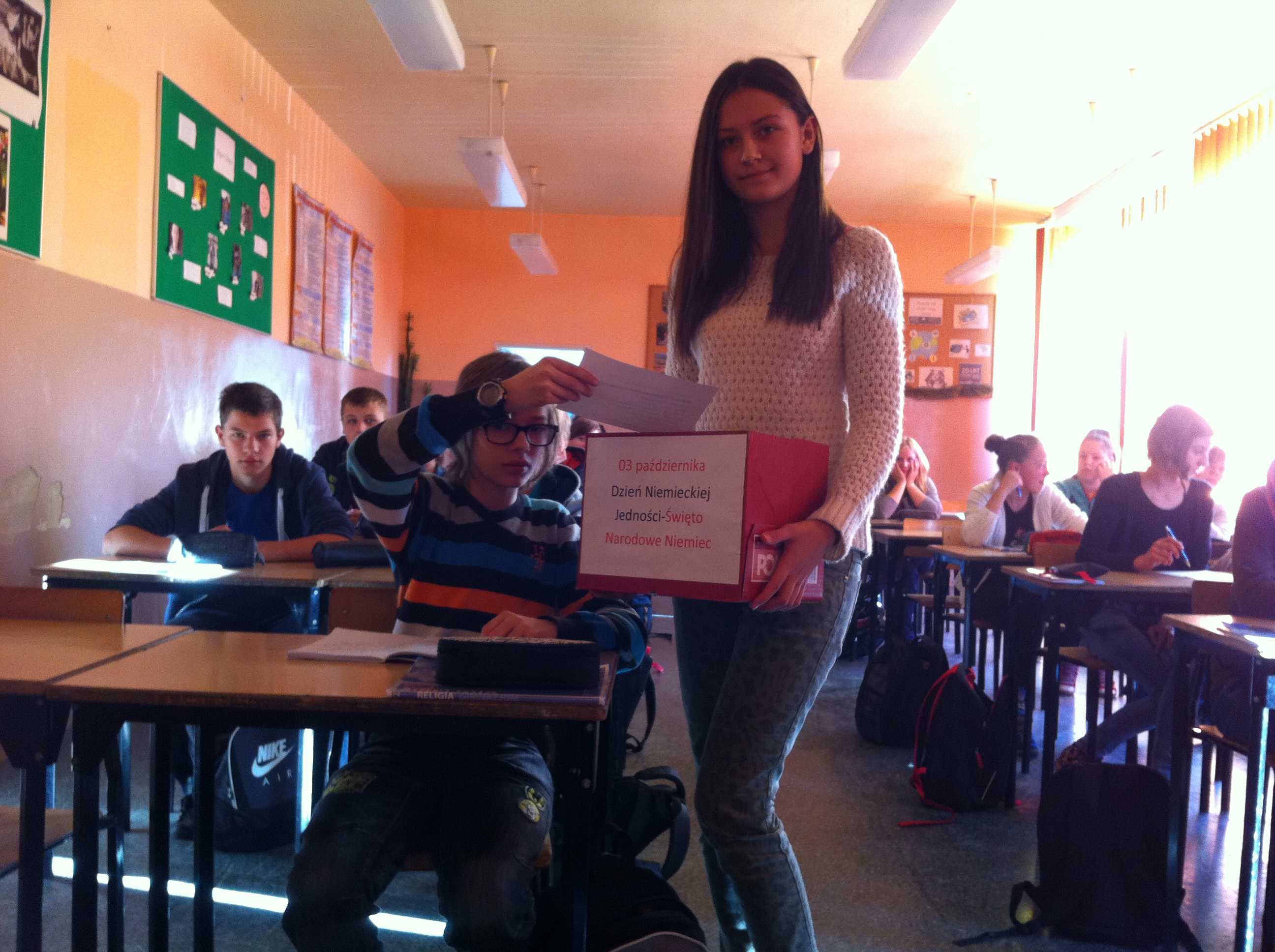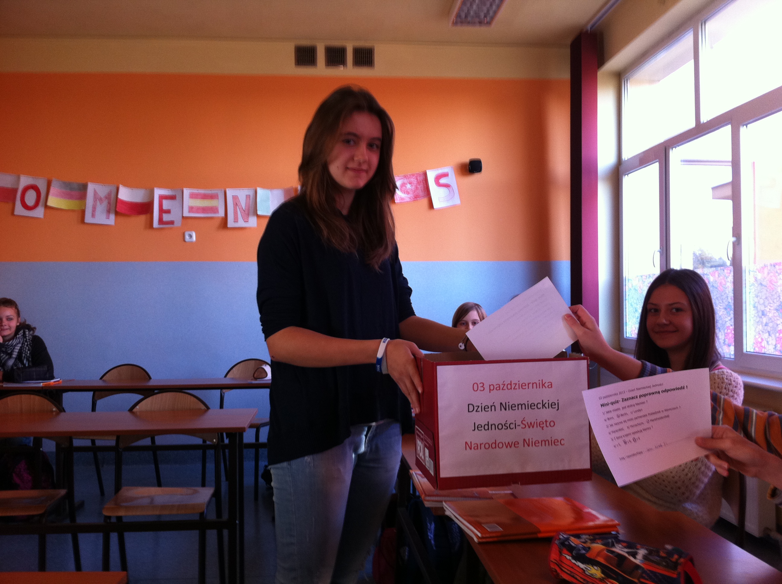 Am 3. Oktober, dem Tag der Deutschen Einheit, fand zu diesem Anlass in der Gesamtschule in Pobiedziska ein kleiner Wissenswettbewerb über Deutschland statt.
