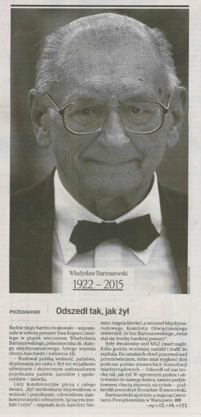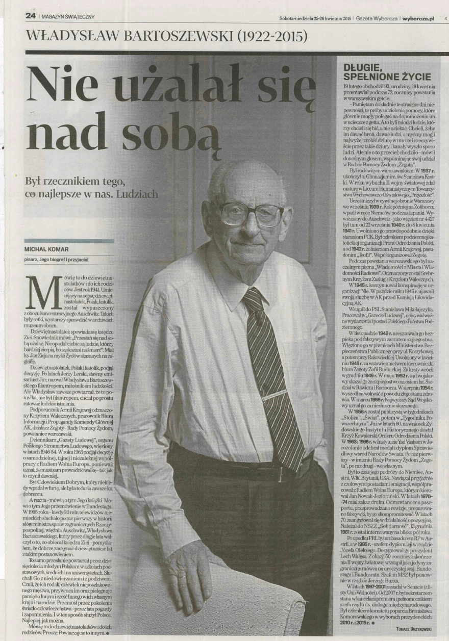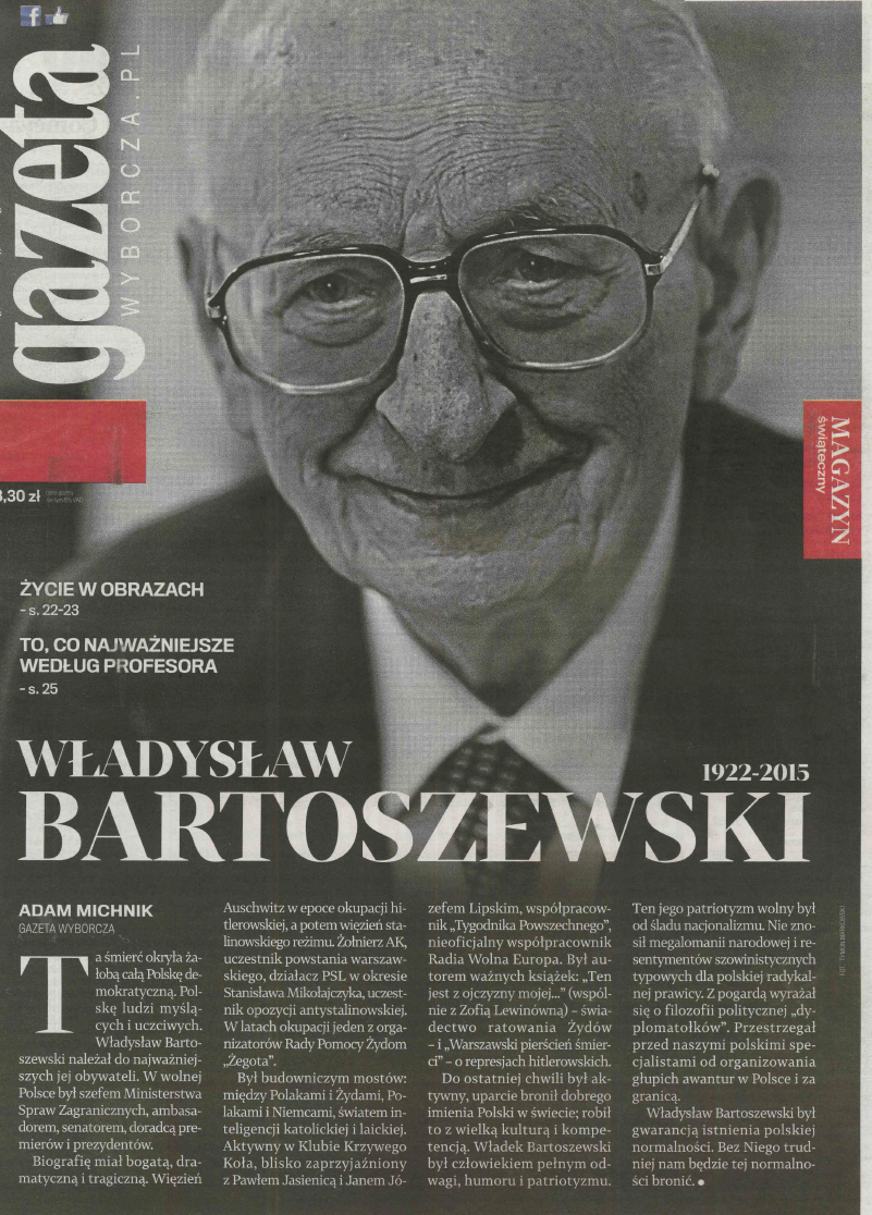Noch vor wenigen Tagen hielt Professor Bartoszewski eine Rede anlässlich des 72. Jahrestages des Warschauer Ghetto-Aufstandes.