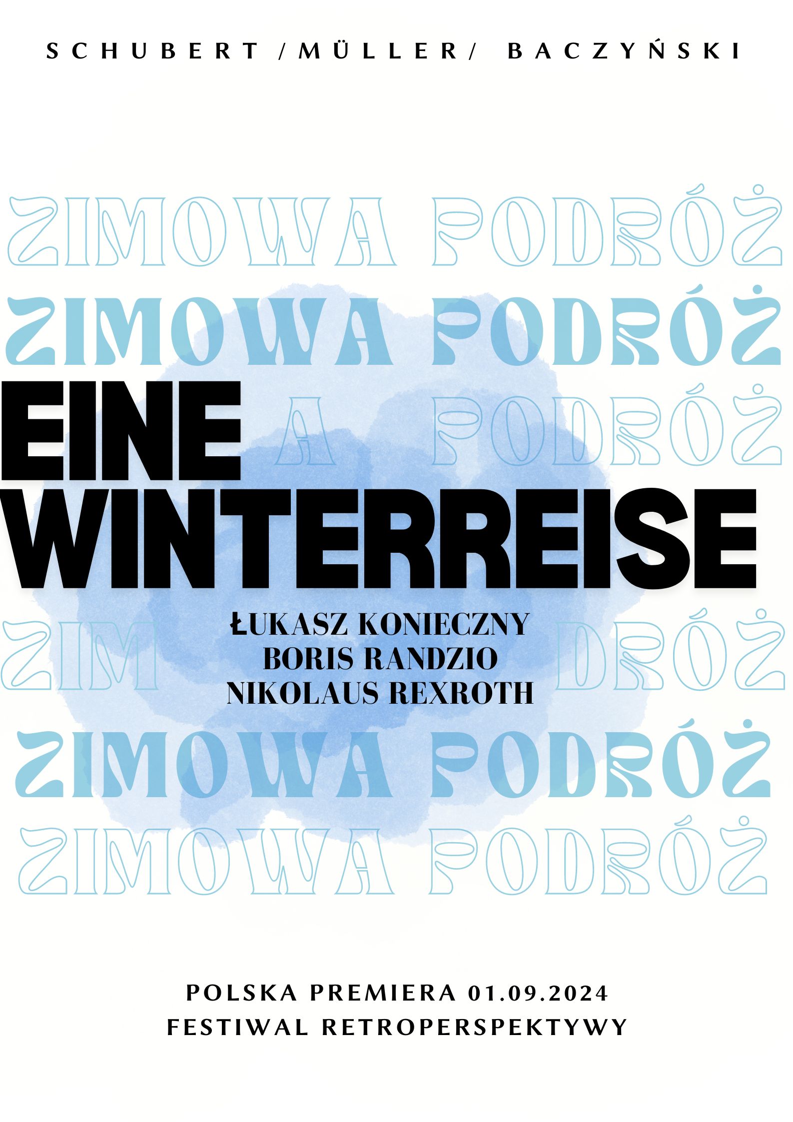 "Eine Winterreise - Schubert/Müller/Baczyński" ist ein mehrstufiges Projekt in 24 Bildern/Szenen/Liedern, in dem die Musik von Franz Schubert und die Gedichte von Wilhelm Müller mit der Poesie von Krzysztof Kamil Baczyński verwoben werden. Es ist eine einsame Reise in die Tiefen der menschlichen Seele, in ihre dunkelsten Abgründe, ein Streben nach Licht, das sich in endgültige Dunkelheit verwandelt.