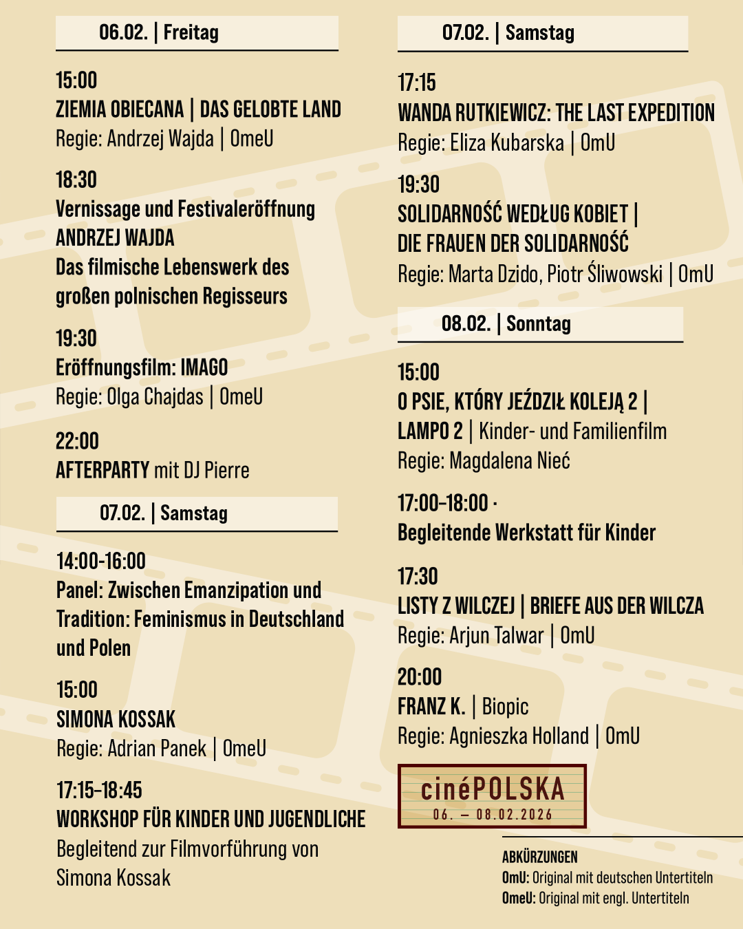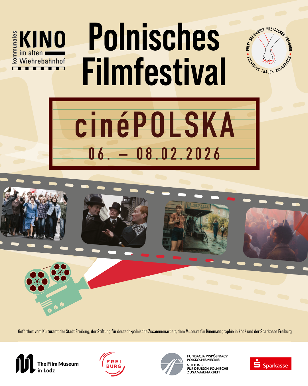 cinePOLSKA 2026 ist eine Initiative des Vereins Polnische Frauen Solidarisch e.V. und findet vom 6. bis 8. Februar 2026 im Kommunalen Kino Freiburg statt. Das Festival präsentiert eine kuratierte Auswahl zeitgenössischer polnischer Spiel- und Dokumentarfilme, die sich mit Themen wie Freiheit, Erinnerung, gesellschaftlichem Wandel, Frauenrechten und Demokratie auseinandersetzen und einen lebendigen kulturellen Dialog fördern. Begleitende Gespräche und Diskussionsformate laden zum Austausch ein und stärken den deutsch-polnischen Kulturdialog.