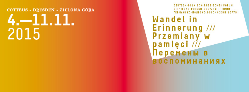 Das deutsch-polnisch-russische Forum „Wandel in Erinnerung“ (4.-11. November 2015 in Cottbus, Zielona Góra und Dresden) hinterfragt in Filmen und Diskussionen, wie diese Erinnerung unsere Wahrnehmung der Gegenwart und aktuelle gesellschaftliche Entwicklungen prägt. Das Cottbuser Programm findet im Rahmen des 25. FilmFestival Cottbus (www.filmfestivalcottbus.de) statt.