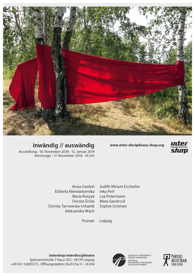 Mit der Kooperation „inwändig//auswändig“ entstand 2018 ein Austauschprogramm zwischen ehemaligen Schülerinnen der Klasse Prof. Anna Goebel (Universität der Künste Poznań) und Künstlerinnen aus dem Künstlerinnen-Netzwerk Leipzig, initiiert vom intershop interdisciplinaire.