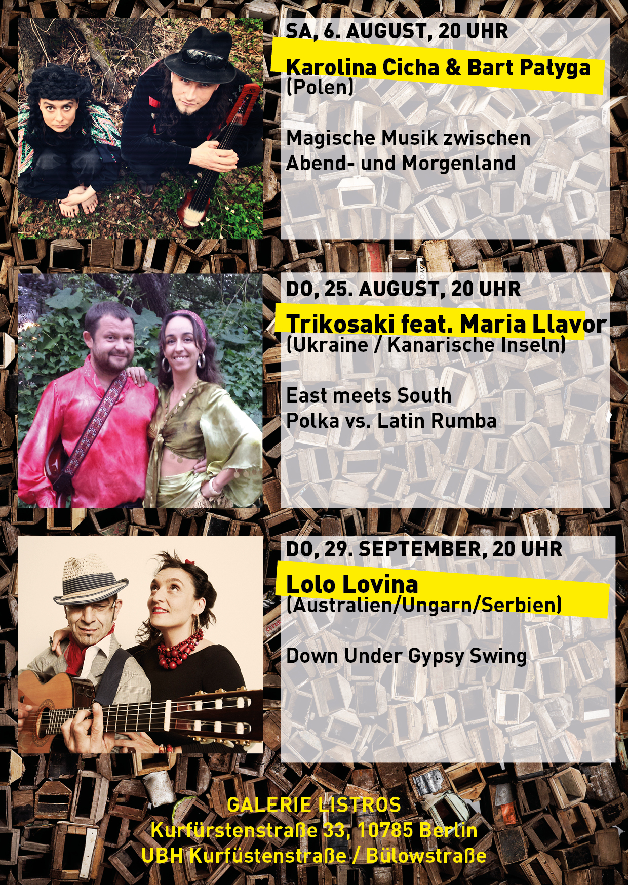 6 August 2016 - 6 August 2016 20:00 Galerie Listros, Kurfürstenstraße 33, 10785 Berlin