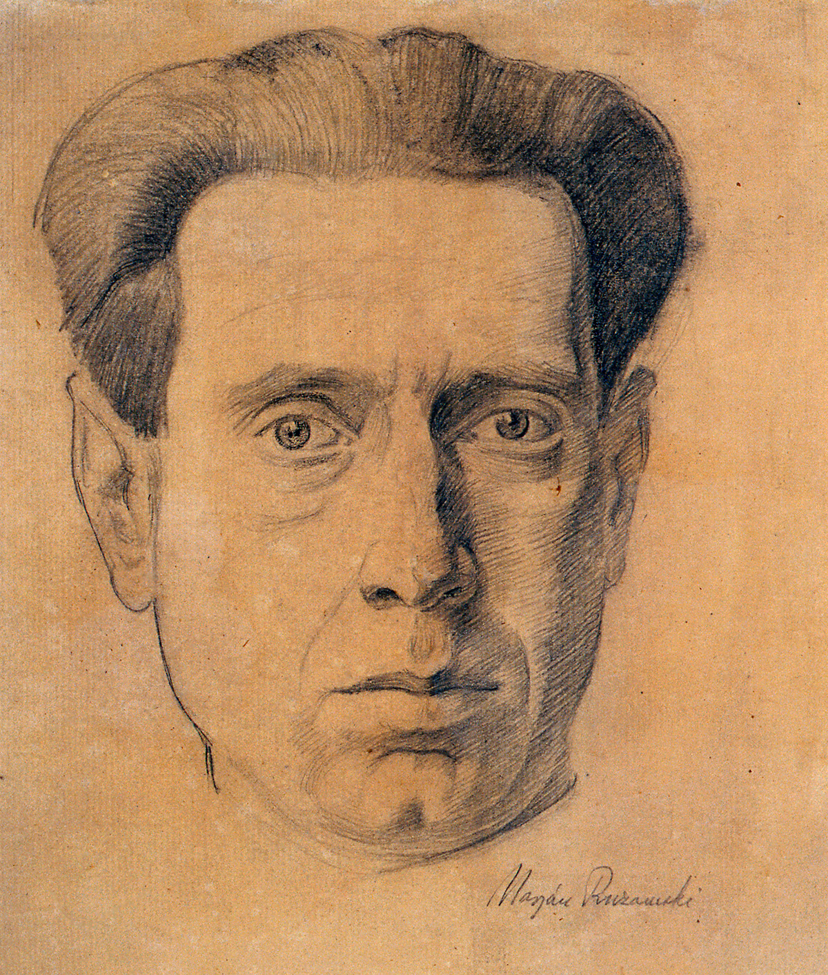 und Marian Ruzamski, Selbstbildnis, Konzentrationslager Auschwitz, 1943 – 1944, Bleistift auf Papier, 25 × 20 cm, Staatliches Museum Auschwitz-Birkenau