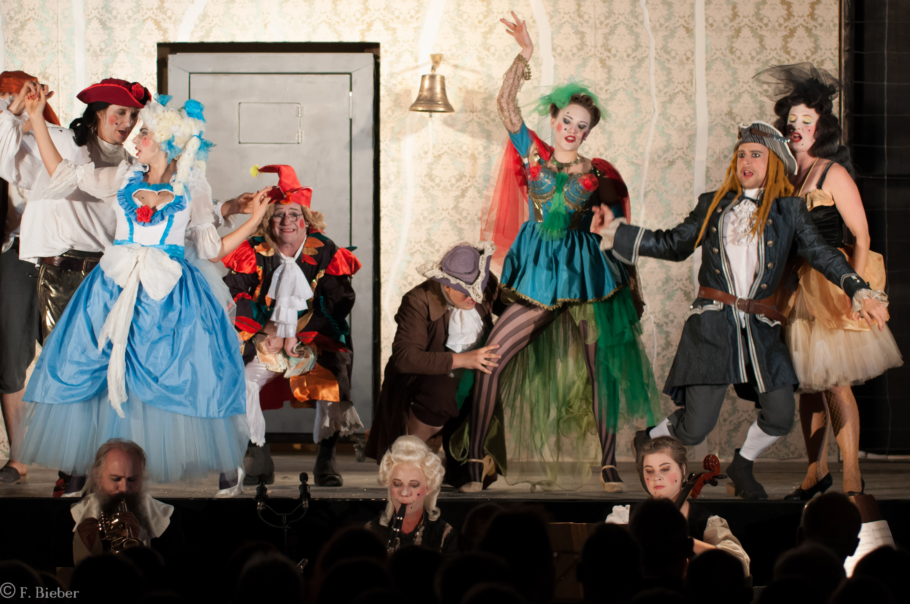 Wenn Petra Schwaan-Nandke alias Fieken Dunnerwedder in der „Zauberflöte“ von Wolfgang Amadeus Mozart aufkreuzt, passiert genau das: Niederdeutsch kreuzt Hochkultur. Regionale Tradition stößt auf globales Kulturerbe und sorgt für Aufruhr. Doch da das weltberühmte Singspiel aus dem Jahr 1791 ein philosophisches Märchen im Volkston ist, tut dies Mozarts ursprünglicher Idee keinen Abbruch. Im Gegenteil: es betont den Volkscharakter und beweist auf neue Art, dass niveauvolle Oper keineswegs elitär sein muss. In unserer Version „De Zauberfläut“ bleiben die musikalischen Nummern unangetastet und werden durch junge, begabte professionelle Sängerinnen und Sänger interpretiert. Die endlosen Dialogpassagen der Originalvorlage aber fallen weg und ihr Inhalt wird durch Petra Schwaan-Nandkes unnachahmliches Talent wirkungsvoll serviert. Wer sie kennt, liebt sie bereits, wer sie nicht kennt, liebt sie spätestens nach dem Besuch einer unserer Vorstellungen. Wer mit Platt bislang nichts am Hut hatte, den wird es erstaunen, wie reizvoll diese Sprache ist, wenn sie aus dem Mund einer echten Volksschauspielerin kommt! Und wer mit Oper nichts anfangen konnte, wird von Mozarts Musik verzaubert werden – versprochen!