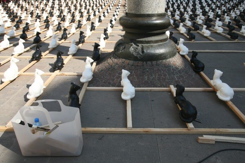 Ottmar Hörl, Präsident der Nürnberger Kunstakademie, realisiert seit Jahren hintersinnige, humor- und phantasievolle Projekte, die Kunst mit dem öffentlichen Raum verbinden. Seine Arbeiten bestehen aus tausenden gleicher Kunststofffiguren, die mit wichtigen Kunstwerken oder Symbolen der Stadt, in der sie aufgestellt werden, verknüpft sind. Zu den bekanntesten Installationen Hörls gehören: „Berlin-Bären“ auf der Straße Unten den Linden zwischen Brandenburger Tor und Friedrichstraße, im Rahmen des Beitrags der Stadt Berlin zur Initiative „Boulevard Metropolis“ (2000), Gartenzwerge auf dem Münchner Max-Josef-Platz anlässlich der internationalen Opernfestspiele (1998), "Das große Hasenstück" in Nürnberg zum 500. Jubiläum von Albrecht Dürers Bild "Der junge Feldhase" in Verbindung mit dessen einzigartiger Naturstudie "Das große Rasenstück" (2003), "Richard Wagner für das 21. Jahrhundert" in Bayreuth (2005) und Eulen in Athen (2005).