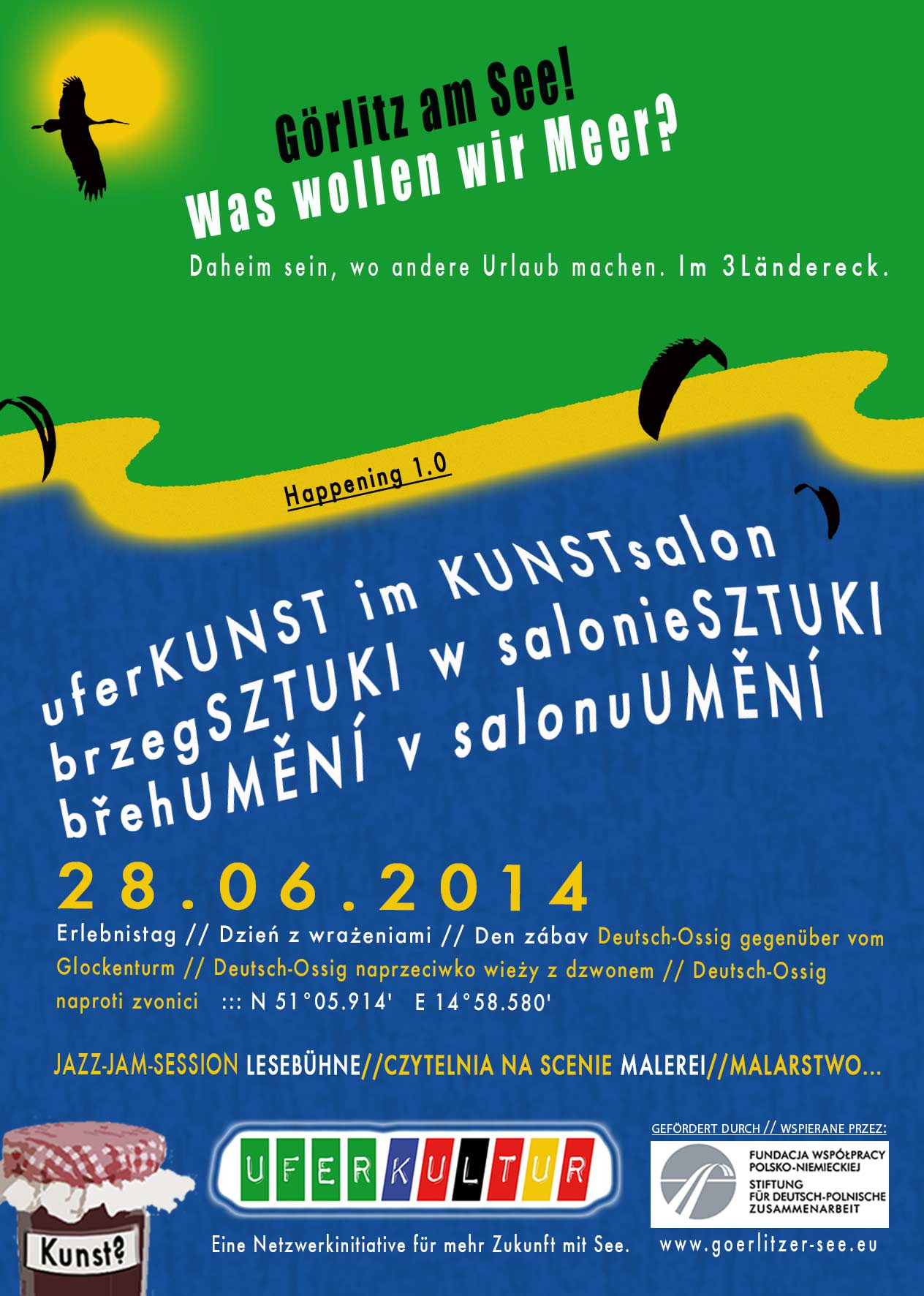 [...] Zum Erlebnistag am 28. Juni werden neben der Strandkorb-Aktion auch das Projekt „uferKUNST3“ in Deutsch-Ossig vorgestellt. Das Besondere dieses Projektes ist das Ausweiten des Kunstbegriffes auf das Selbermachen von Marmelade. Sie haben richtig gelesen – Marmelade!